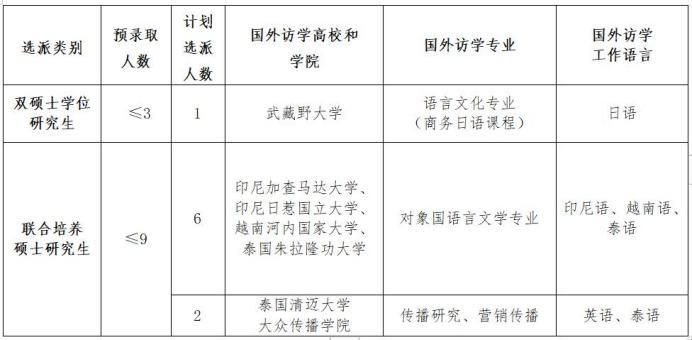 以上选派对象将根据国外院校合作需要和报名情况择优录取。具体项目类别及计划选拔名额如下: