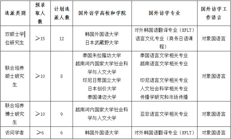 以上选派对象将根据国外院校合作需要和报名情况择优录取。具体项目类别及计划选拔名额如下: