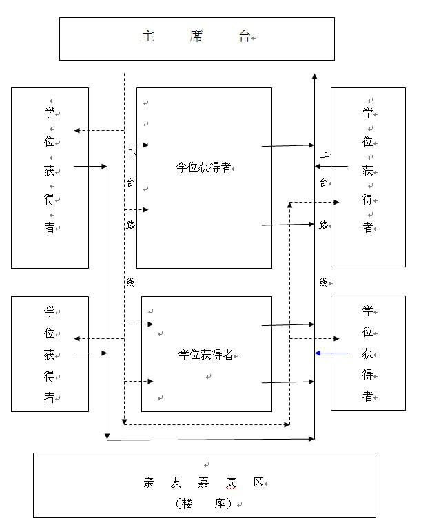 7、受礼后,学位获得者应及时从舞台左侧(面向舞台)退下,在工作人员指引下回到指定区域,不可在台前逗留。
