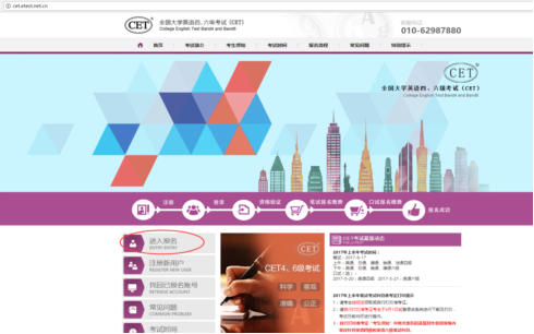 第一步骤:登录CET报名网站,点击进入报名,注册账号