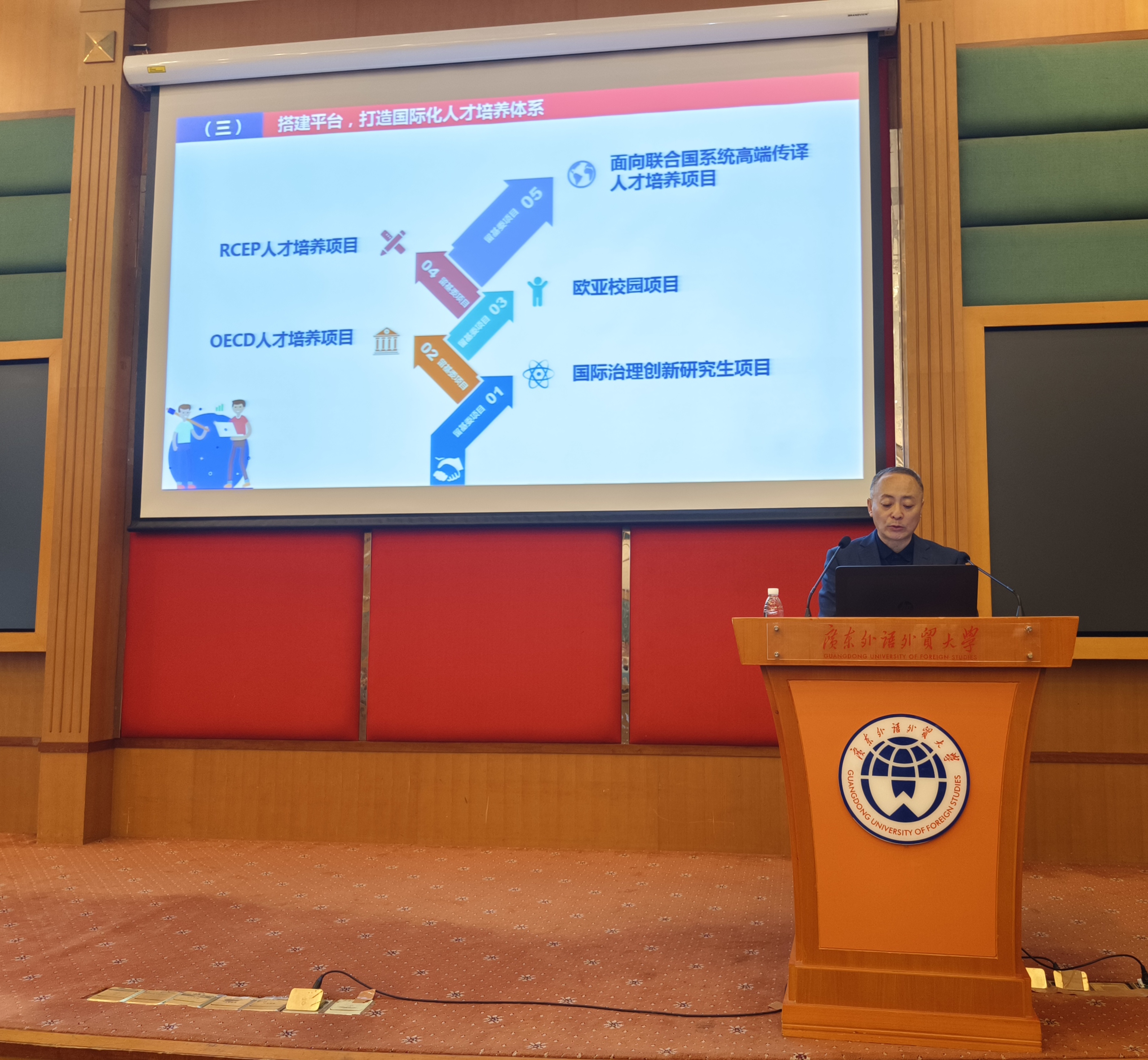 在会上,刘海春指出,党的二十大首次将教育、科技、人才作为全面建设社会主义现代化国家的基础性、战略性支撑,提出了“全面提高人才自主培养质量,着力造就拔尖创新人才”的总要求。学校将2023年作为“研究生教育高质量发展年”,各单位要提高站位、主动作为,切实推动研究生人才培养高质量发展。他提出要以生源质量、导师队伍、论文质量三个方面为抓手提升研究生培养质量,进一步把握好研究生培养数量和质量的关系、学位点“多”和“精”的关系、人才培养“全”和“特”的关系,重点做好五项工作:一是推进学位点申报,要全力冲击一级学科、专业学位博士点,硕士点申报重点聚焦专业学位硕士点;二是加强研究生课程思政、示范课程和教材建设,提升课程教材育人效果;三是培育研究生教学成果奖,抓住教学成果奖将研究生类别指标单列的机遇,立足现有人才培养优势,凝练特色,争取在研究生层面冲击国家级教学成果奖;四是深化研究生教育国际化,进一步在拓宽平台、提升层次、树立品牌上下功夫,在留基委国际化品牌项目打造、粤港澳人才培养专项、“多语种+专业”上推出更多亮点成果,打造国际化教育的新增长点;五是确保研究生复试工作规范、安全,各培养单位要严格规范复试组织工作,加强考前考中考后管理,要压实责任,严肃复试工作考风考纪,要科学设计复试内容,确保复试考核科学有效、公平公正。