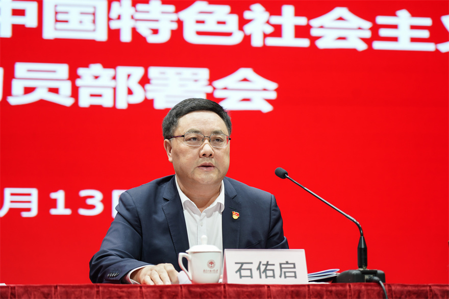 石佑启要求,全校各级党组织要深入学习领会习近平总书记重要讲话精神和党中央、省委工作部署,精心组织实施,抓好贯彻落实。一是统一思想、提高站位,深刻领悟开展主题教育的重大意义,奋力谱写学校高质量发展新篇章。全校各级党组织要深刻领悟开展主题教育的重大意义,不断提高政治判断力、政治领悟力、政治执行力,增强“四个意识”、坚定“四个自信”、做到“两个维护”,坚决做到把开展好本次主题教育作为当前全校党员干部的首要政治任务和提振干事创业精气神的重要举措。二是锚定目标、一体推进,不折不扣落实主题教育总要求,切实把学习成果转化为发展成效。全校各级党组织要牢牢把握“学思想、强党性、重实践、建新功”的总要求。在理论学习方面,注重学思践悟,学出理想信念、学出能力本领;在调查研究方面,注重实事求是,锤炼过硬作风、提升工作效能;在推动发展方面,注重真抓实干,涵养政治品格、强化担当作为;在检视整改方面,注重有力有效,坚持克己奉公、增强廉洁自律。三是精心组织、以上率下,有力有序有效推进各项工作落实落细,确保主题教育落地生根。要强化“组织领导”“真督实导”“工作统筹”“宣传引导”四项工作,确保主题教育各项工作落到实处。石佑启强调,全校各级党组织要坚决贯彻落实党中央和省委部署要求,以高度的政治责任感和扎实的工作作风,把主题教育组织好、开展好、落实好,踔厉奋发、勇毅笃行,加快推进学校各项事业高质量发展,为国家和广东经济社会高质量发展作出新的更大贡献。