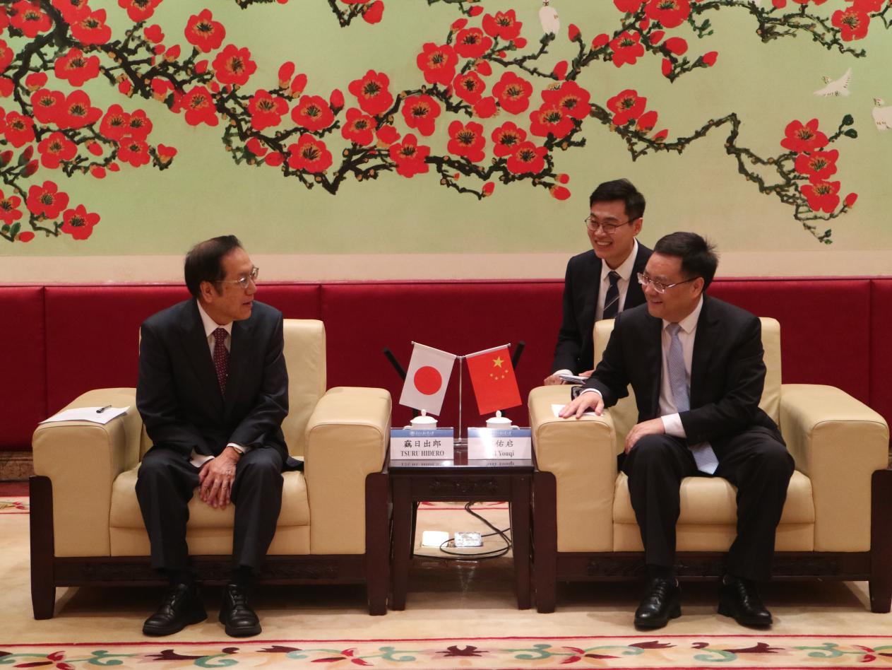10月20日上午,日本札幌大学副校长靏日出郎(TSURU HIDERO)一行来访,我校党委书记石佑启在白云山校区行政楼贵宾厅会见来宾。双方就加强交流合作等交换意见。