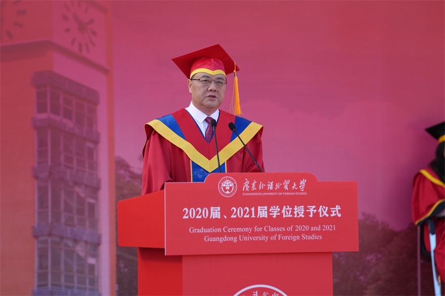 金秋时节,重逢有期。11月18日下午,白云山校区综合体育场格外热闹温馨,学校在58周年校庆之际郑重兑现承诺,为2020届、2021届毕业生补办了一场盛大的学位授予仪式。4200余名校友跨越山海,再聚云山,与母校“双向奔赴”,共赴这场青春之约。校党委书记石佑启,校长闫相斌,校领导、主礼教授为毕业校友拨穗授礼并合影留念,寄语同学们不忘广外路、坚守广外心、赓续广外情,续写更加精彩的人生华章。
