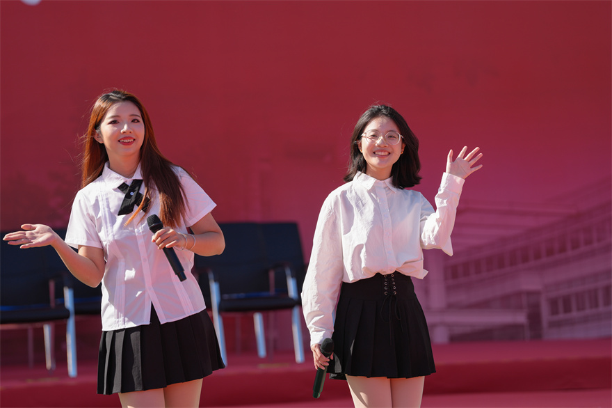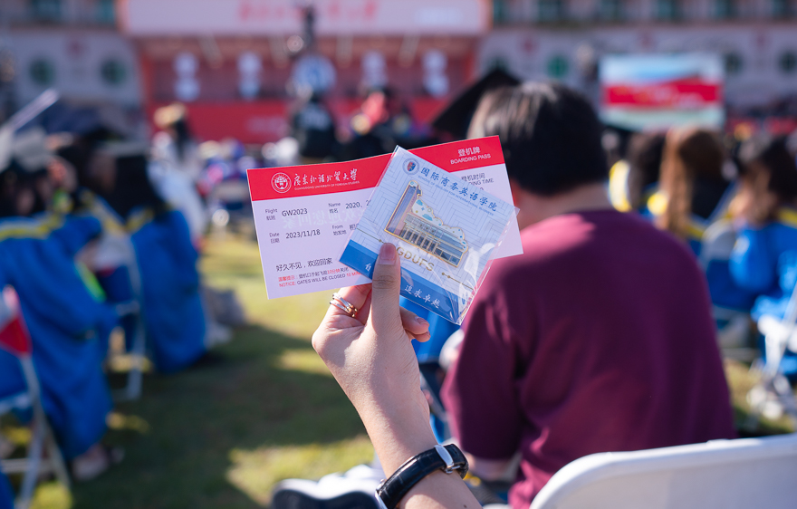 在仪式开始前,现场上演了舞狮表演、多语种歌曲《星辰大海》和青春快闪等节目,精彩的表演将现场氛围不断推向高潮。在仪式现场,石佑启、闫相斌还为当天生日的同学送出广外专属生日礼物。在仪式的最后环节,全体在场人员共同祝福广外生日快乐,全场合唱《我和我的祖国》,并进行全场大合照,共同期待再次相聚。