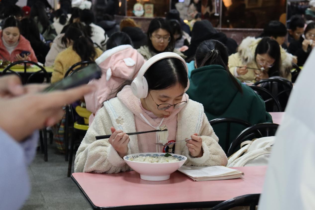考生在食堂用餐