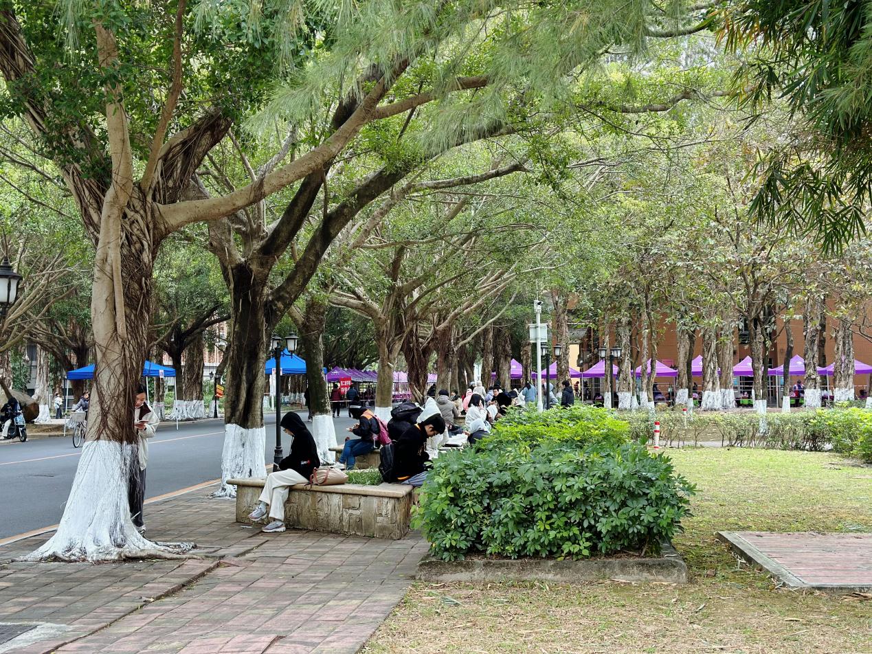 考生在校园一隅候考