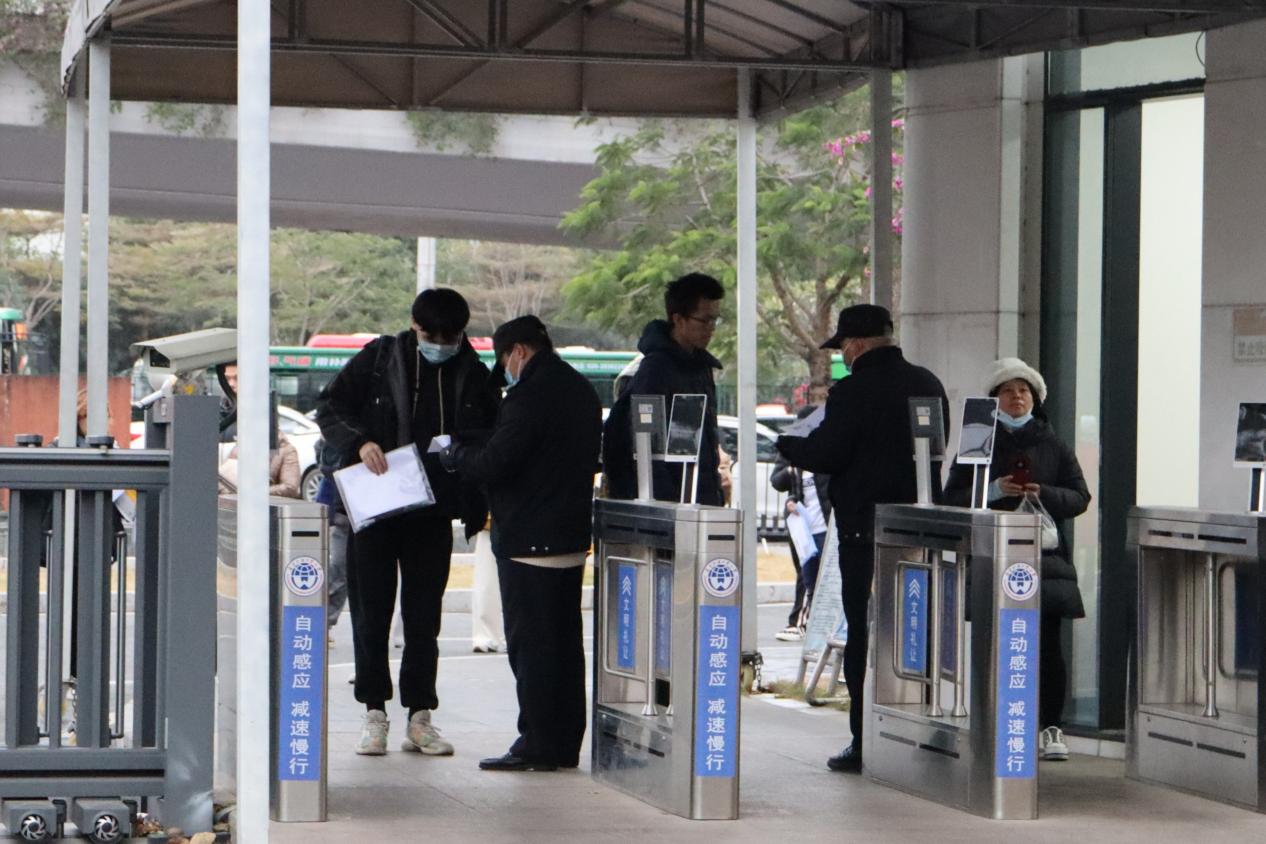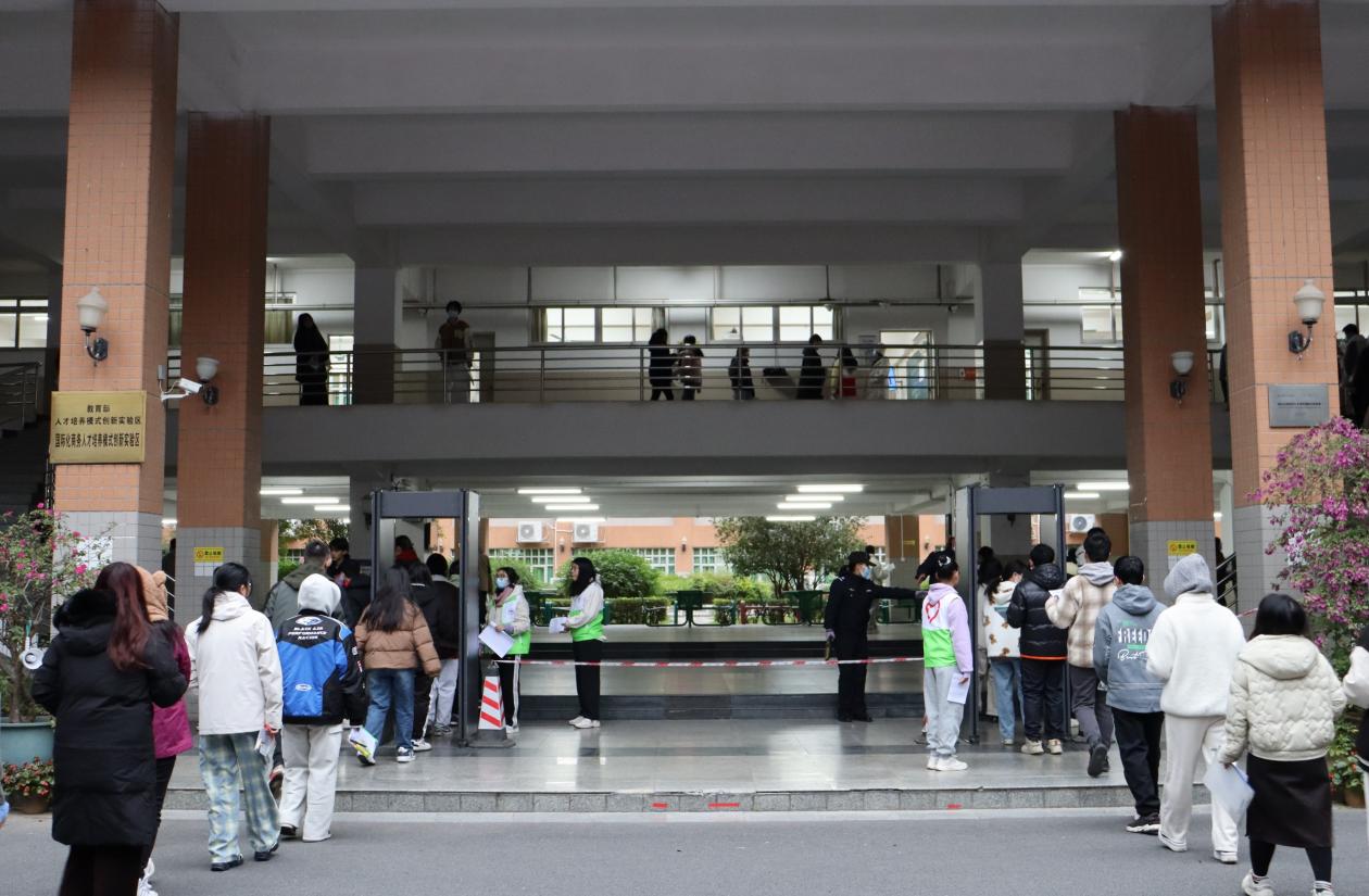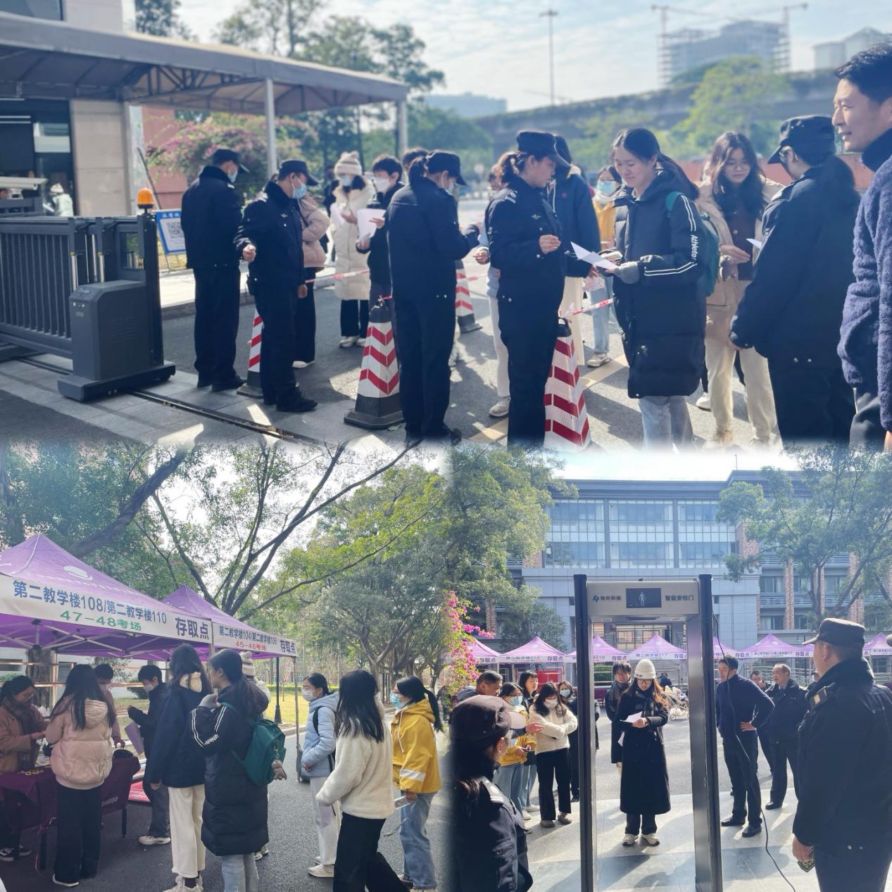 为严防作弊,今年研考全面实施了手机智能安检门检测,设置了入校身份识别——智能安检门——考场人脸识别——金属探测仪检测等多重安检环节,并配足配齐5G屏蔽仪。此外,学校合理设置安检通道、随身物品存放处和考生候考区域,提前制定安检方案,做好应急演练,增派安保人员,确保考生安检顺畅不拥挤。