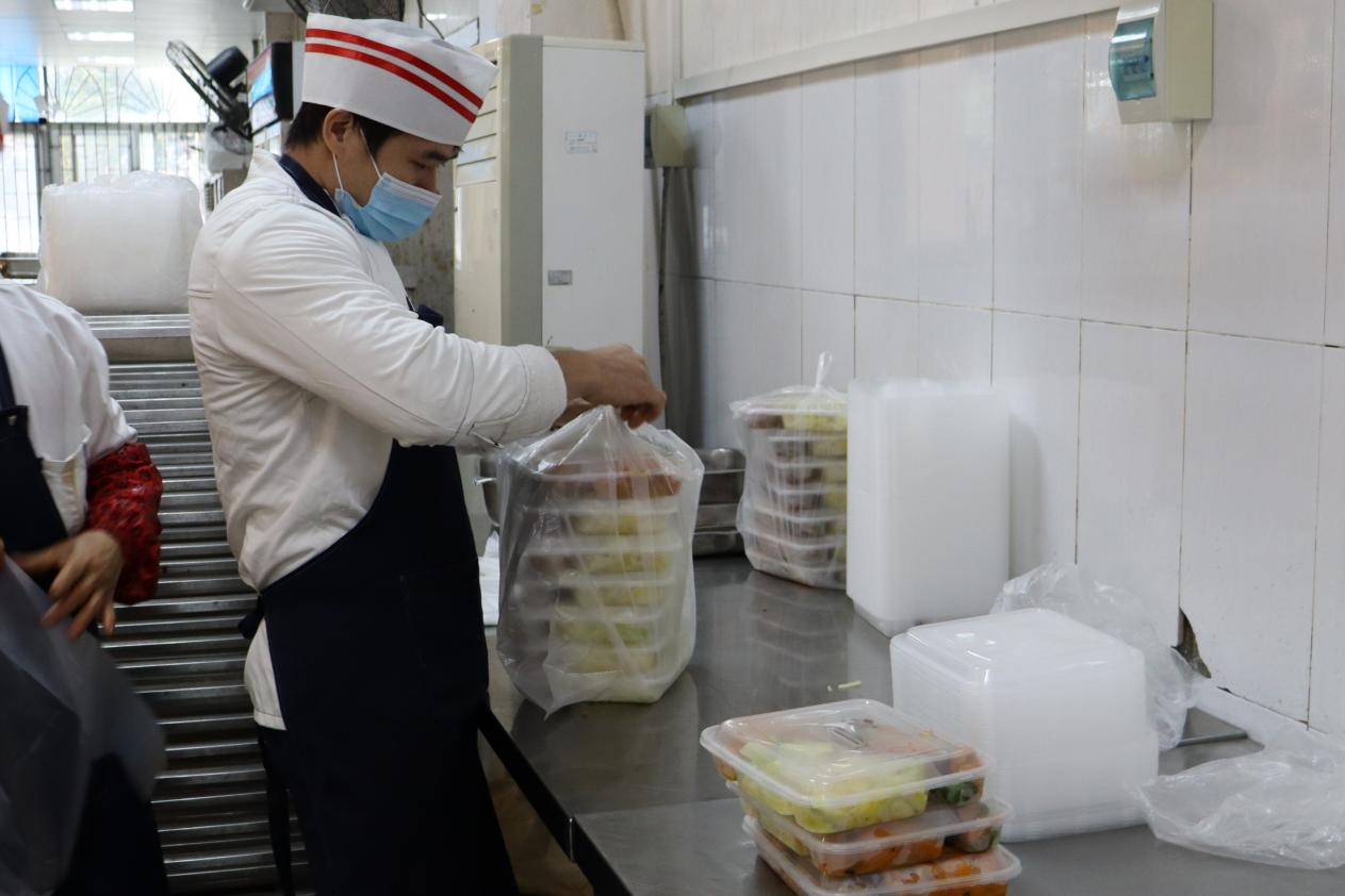 食堂工作人员为考生准备午餐盒饭