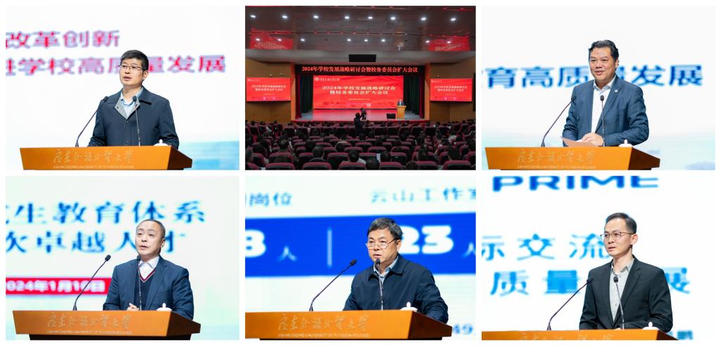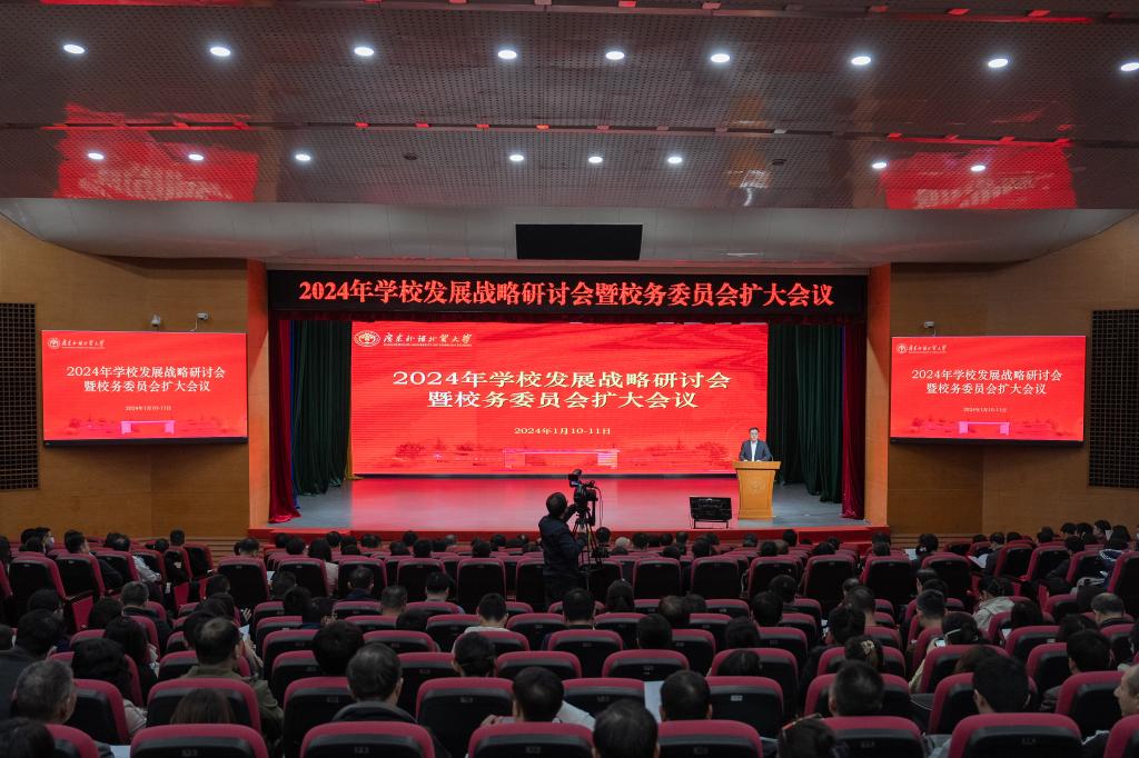 1月10日至11日,学校在白云山校区六教报告厅召开2024年学校发展战略研讨会暨校务委员会扩大会议,研讨学校事业实现高质量发展的方向和路径。校党委书记石佑启主持会议并作总结讲话,校长闫相斌以“求新思变 聚势而为 奋力开创学校事业高质量发展新局面”为题作主题报告。校领导、校务委员、校学术委员会委员、全校副处职(级)以上干部、系(部)主任代表,各教学、科研、教辅单位办公室主任,党政群部门科长参加会议。