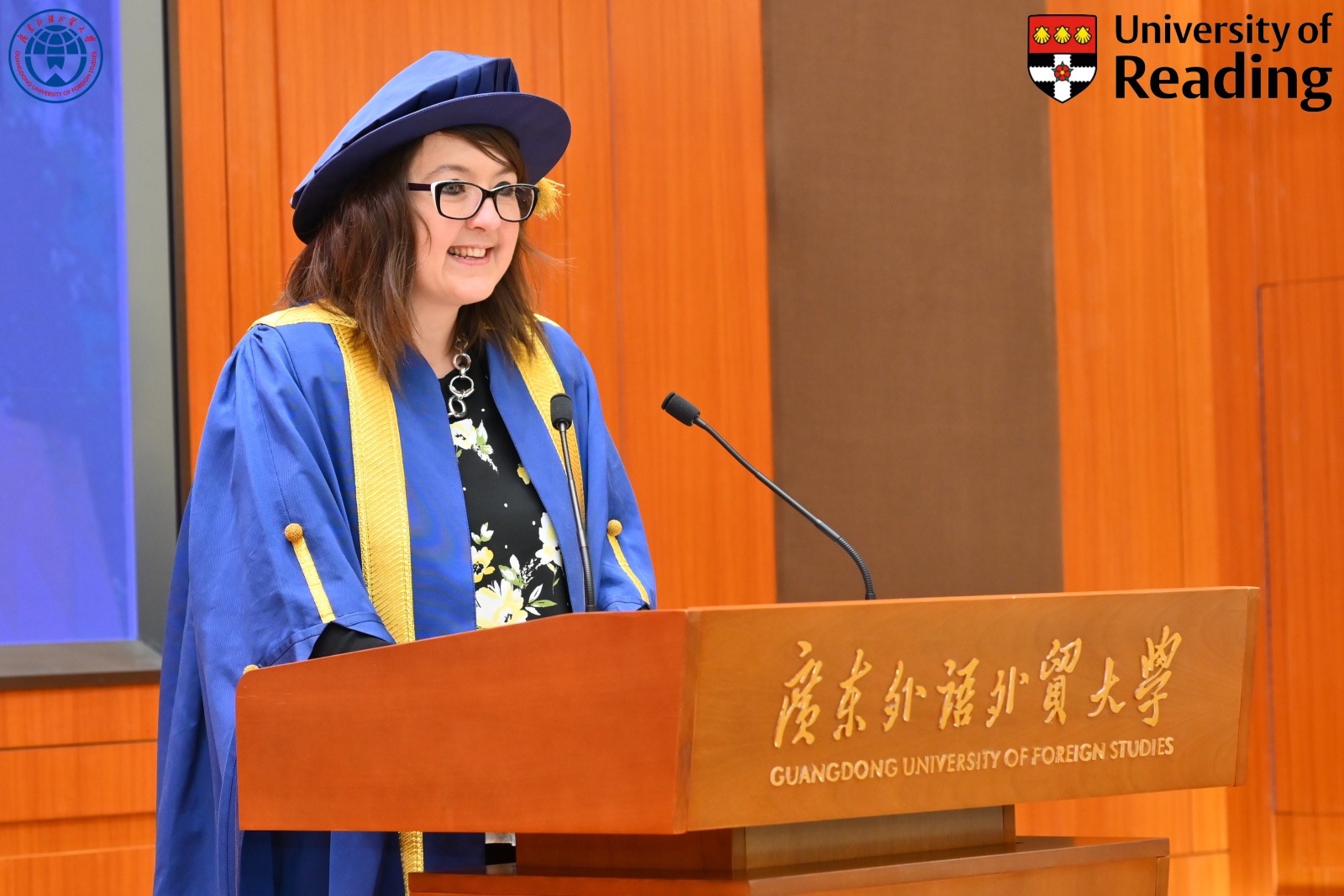 卡罗琳·贝隆在致辞中表达了对中国文化的赞赏,并期待两校未来在多个领域深化合作。她强调,雷丁大学与广外均享有国际学术声誉,两校取得的卓越成就与双方紧密合作密不可分。她提到,雷丁大学在气象、气候研究及教育学院方面成就显著,为应对全球气候变化、保护环境作出了重要贡献。她高度赞赏广外-雷丁项目,认为该合作不仅对国际教育事业有前瞻性贡献,还将继续书写辉煌篇章,为国际教育事业贡献智慧和力量。