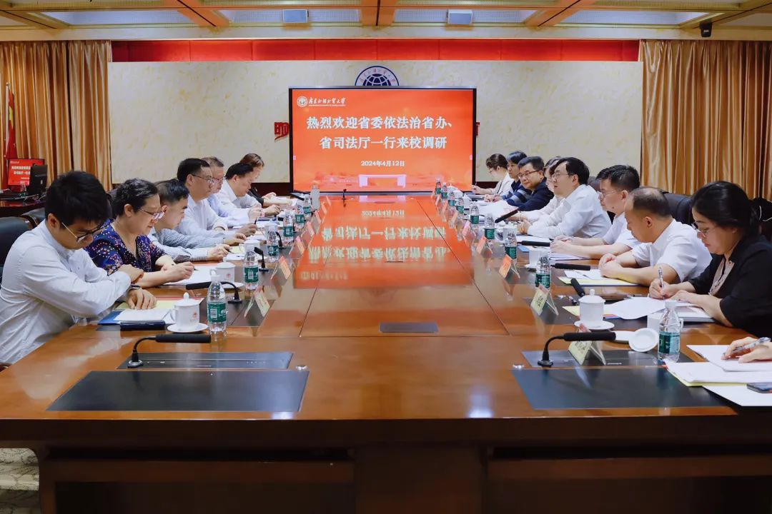 4月12日,省委依法治省办副主任、省司法厅党委书记、厅长陈旭东来访我校,就涉外法治人才培养工作进行座谈调研。校党委书记石佑启出席座谈会。