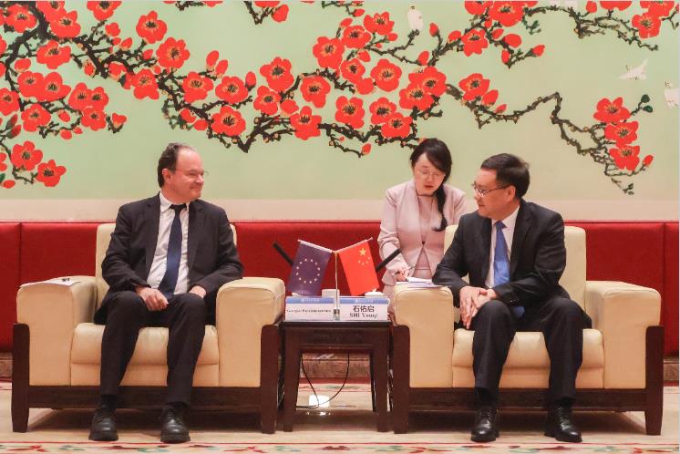 石佑启对乔治·帕帕康斯坦丁努一行的来访表示热烈欢迎,并介绍了我校的办学历史、国际化特色、国际交流合作PRIME计划,并特别提到了国际治理创新学院在培养参与全球经济治理的复合型高端国际人才方面所取得的显著成果。我校始终秉持开放办学的理念,以鲜明的国际化特色为引领,特别是在2016年,我校率先成立了国际治理创新学院,集合了语言、经济管理、法律等多学科的优势,为培养能够胜任全球经济治理任务的复合型人才提供了强有力的支持。石佑启对欧洲大学学院深厚的学术底蕴和突出的学科建设成果给予了高度评价,表示该校是我校的重要合作伙伴。他期待通过本次交流洽谈,能够进一步拓宽双方的合作领域、提升合作层次,共同推动两校在国际化办学方面取得新的突破和进展。