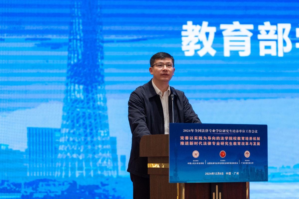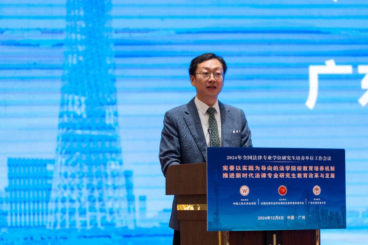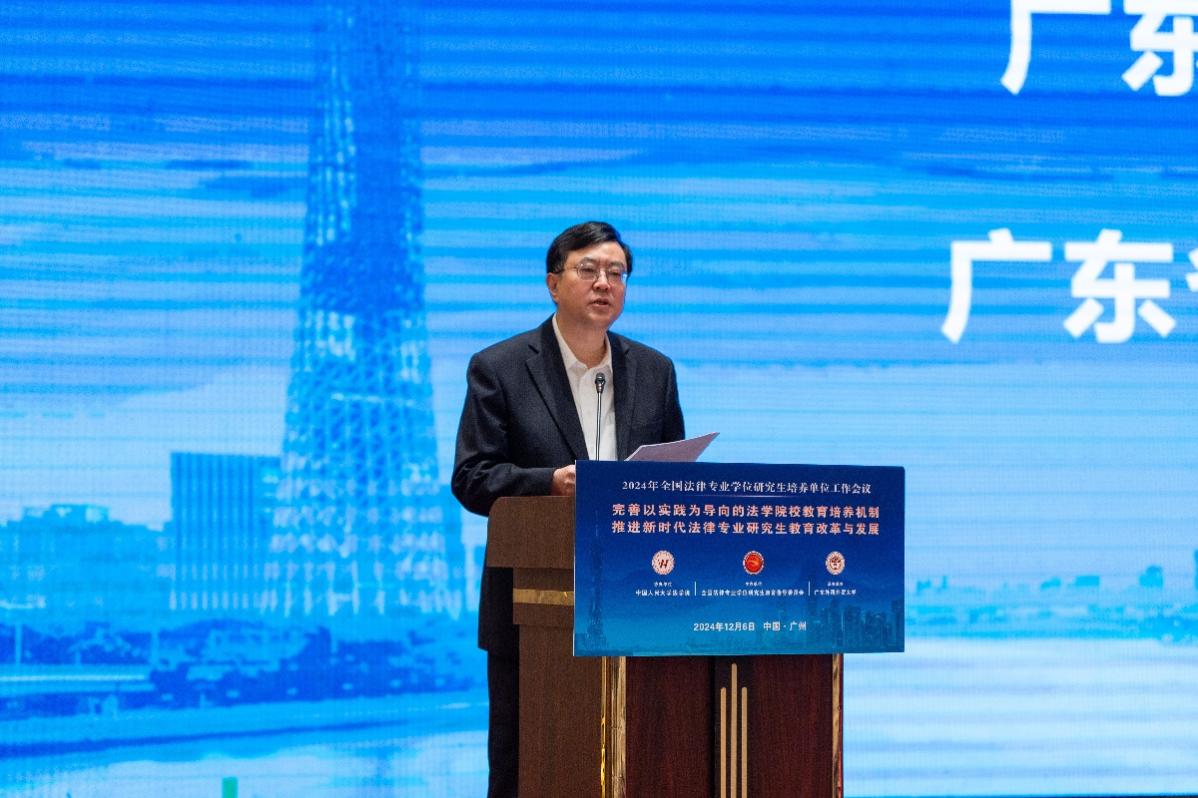 广东省委教育工作委员会委员、广东省教育厅党组成员、副厅长冯伟在致辞中指出,近年来,广东省委、省政府围绕中央关于教育强国建设的决策部署和省委“1310”的具体部署,把扎实推进教育高质量发展、建设教育强省作为工作主线,深入推进实施八大工程,加快建设高质量教育体系,以实施高等教育“冲一流、补短板、强特色”提升计划为抓手,深入推进广东研究生教育的内涵式发展,不断深化研究生培养模式的改革。在人工智能技术飞速发展的背景下,未来的法学教育要培养与未来接轨的法律人才。他希望通过本次会议的交流和研讨,共同探寻法学专业学位研究生教育人才培养体系的路径,推动法学研究生教育迈向内涵式提升和高质量发展的新阶段。