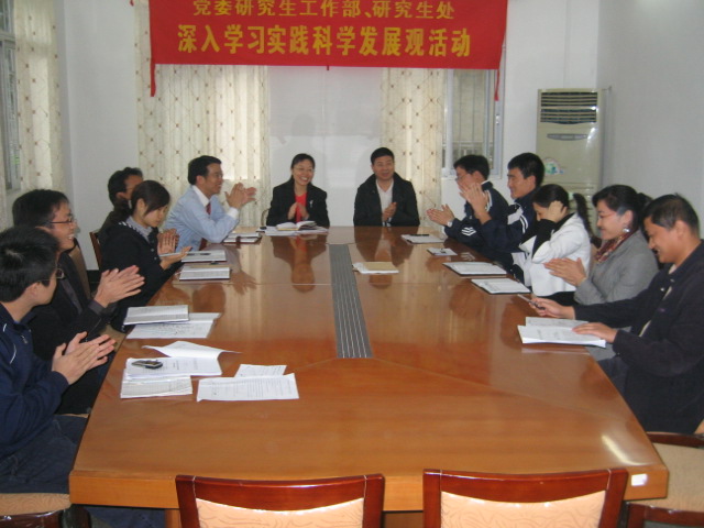 首先,敖湘晖结合工作情况作了总结。她指出,要发现并弥补研究生德育工作中的不足,加强工作显示度,提升活动品牌性。同时,还应该在科学发展观活动的调研工作中加强力度。