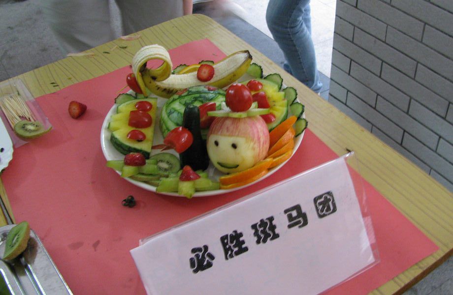比赛开始后,选手们在现场提供的樱桃、草莓,奇异果,杨桃等8种水果身上“大做文章”。30分钟后,各式水果在他们的巧手打造之下,纷纷变身可爱的星星、月亮、小兔等造型,引来周围观众的啧啧称赞。其中,来自中文学院的参赛队伍“必胜斑马团”动作娴熟,设计巧妙,队员配合度高,尤其是她们创意性地将西瓜皮雕成了广外校徽的造型,堪称“化腐朽为神奇”之举。经过现场观众投票及评委打分,最终,她们凭借独具匠心的设计拔得头筹,获得最佳作品奖。最佳创意奖被“夏日果缤纷”队夺得,而最佳人气奖则归属“硕果魔女”队。