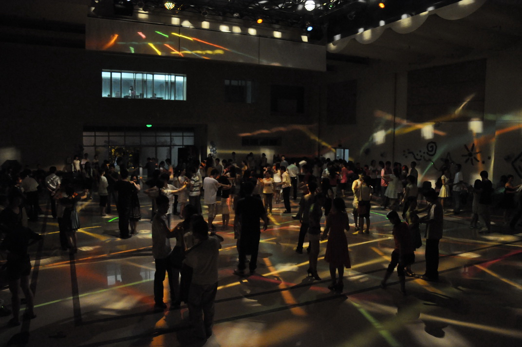 随着优雅的华尔兹舞曲在场内响起,由各高校男女研究生组成的组合纷纷步入舞池中,在缤纷炫目的灯光下翩翩起舞。