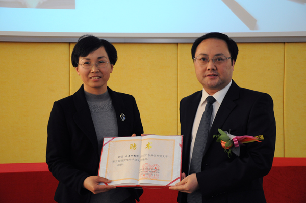 最后,曾用强结合研究生创新培养对本届研究生学术文化节举办的意义做了发言,石佑启为两位导师代表颁发了聘书。