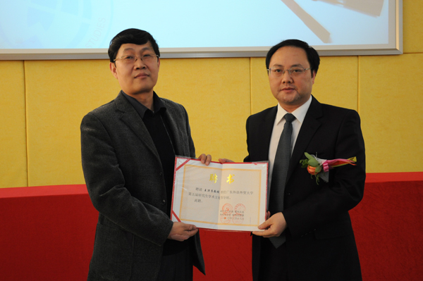 石佑启为王洪良教授颁发聘书(实习生\李倩文)