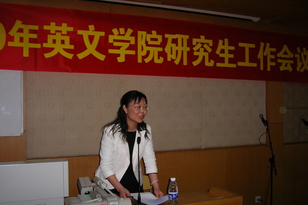 本网讯 3月26日下午,英文学院2010年研究生导师工作会议在北校一教201室召开。我校研究生工作部部长敖湘晖,英文学院副院长方开瑞、所有专兼职研究生导师以及管理人员均出席了会议。大会分为全体会议和分组讨论两个阶段,围绕研究生培养质量的提高、研究生培养的软硬件建设、新设专业学位点的发展规划、科研与导师团队建设等议题,与会人员集思广益、共商良策。