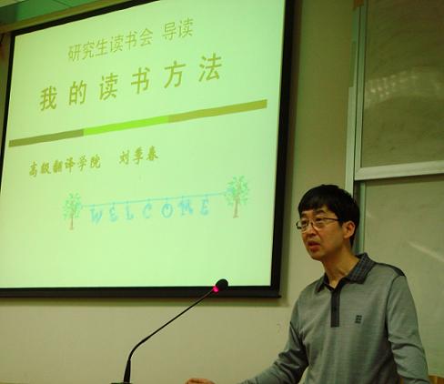 本网讯 4月7日下午,翻译学院研究生读书导读会举行。本次会议旨在贯彻落实我校研究生处有关举行读书报告会的文件精神,进一步提升翻译学院研究生的学术内涵和研究能力。学院笔译系主任刘季春,口译系主任王斌华及全体研究生出席了会议。导读会由刘季春和王斌华主讲。