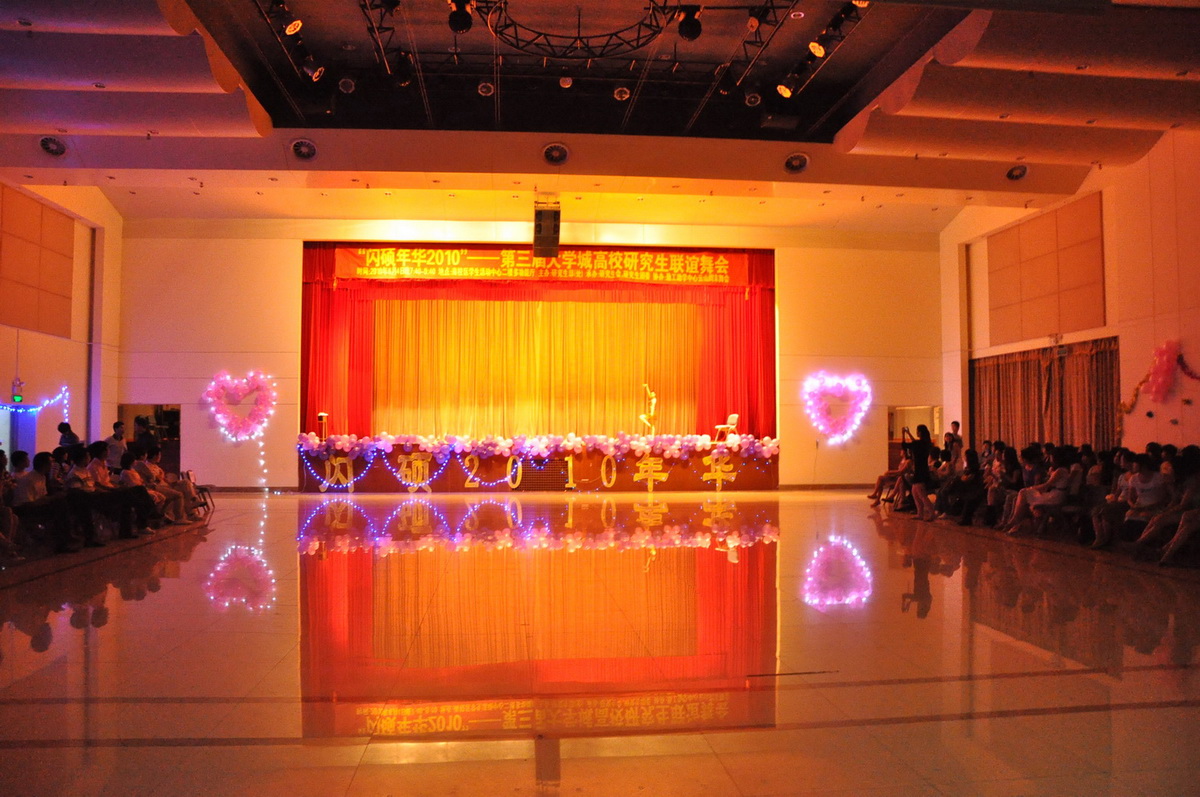 本网讯 6月4日晚,万众期待的“闪硕年华2010”第三届大学城高校联谊舞会在我校南校区学生活动中心二楼梦幻开场。舞会由我校研究生会、研究生团委举办,云山勤工助学中心周末舞会协办,吸引了包括我校在内的中山大学、华南理工大学、广东工业大学等大学城十所高校的300多名研究生到场参加。此次活动旨在丰富研究生课余生活,展现我校研究生的才华和内心世界,丰富校园文化生活,增进广州大学城各高校之间的友谊。至今为止,该活动已由我校连续举办三届,在大学城高校间反响强烈。