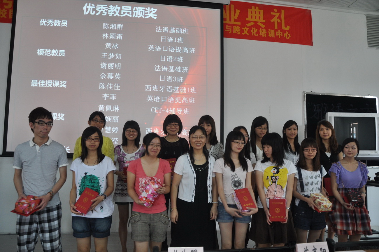 本网讯 6月5日下午,广州大学城及周边地区高校国家大学生文化素质教育基地—语言学习与跨文化培训中心(以下简称“语言学习与跨文化培训中心”)大学城部第三期培训班结业典礼在南校区教学楼F208隆重举行,共有230名学员通过结业考试。我校研究生工作部部长、语言学习与跨文化培训中心主任敖湘晖,研究生会指导老师、培训中心副主任苏高阳,培训中心第一任副秘书长朱震,培训中心和研究生团学干部全程参与了此次活动。