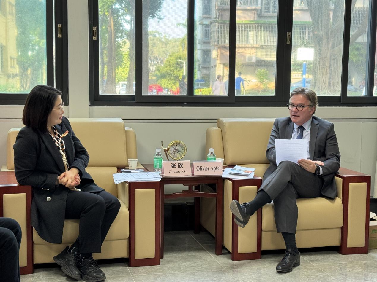 Olivier Aptel对我院的接待表达感谢。他详细介绍了巴黎商学院的发展历程、办学特色、学科优势及全球布局等核心概况,并重点围绕该校各类国际交流人才项目、课程设置、实践资源、成果转化等内容展开深入讲解。他表示,期待以此次交流为起点,与我校在研究生层面的人才联合培养等领域开展全方位、深层次的紧密合作,携手实现互利共赢、共同发展。