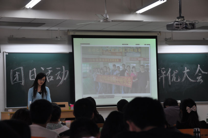 12月2日下午2点30分,2010届研究生主题团日活动评优大会在南校区教学楼G207隆重举行。大会在庄严的团歌中开始,南北校区18个团支部参加了此次大会,展示支部支持亚运,参与亚运,服务亚运的风采。莅临现场的评委嘉宾有苏高阳老师和前任研究生学生会干部。