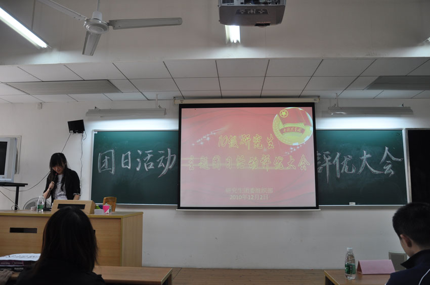 12月2日下午2点30分,2010届研究生主题团日活动评优大会在南校区教学楼G207隆重举行。大会在庄严的团歌中开始,南北校区18个团支部参加了此次大会,展示支部支持亚运,参与亚运,服务亚运的风采。莅临现场的评委嘉宾有苏高阳老师和前任研究生学生会干部。