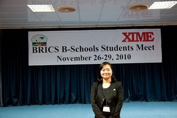 在11月26日上午的开幕式上,吴易明代表我校MBA代表团发言。在发言中,她表示希望广外MBA能成为下一届“金砖五国商学教育协会学生大会”的承办方。在各院校代表发言后,四项展示院校实力及学生风采的精彩活动环节拉开了帷幕。其中,黄春玲获得演讲比赛第一名。在该活动环节,11所学校各派出一名学生就对主题“哥本哈根气候峰会是一次失败”展开支持或反对演讲。黄春玲从近年发生的许多与气候有关的极端天气说起,分析峰会当中发展中国家与发达国家的利益矛盾及最终达成没有约束力的哥本哈根宣言,回应赞同气候峰会是一次失败的主题,并进一步提出政府层面应加强洁净能源投资及个人养成环保低碳好习惯的建议,倡导保护我们的社区、我们的国家、我们的地球。她精彩的演讲得到了评委和师生们充分肯定。最终,我校代表获胜并接受了ABBS协会主席、印度泽维尔创业与管理学院(XIEM)院长Philip教授的颁奖。