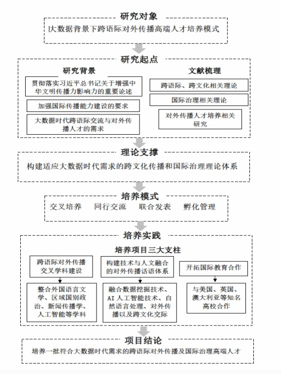本成果依托国家留基委“面向经合组织(OECD)的信息数据人才培养项目”及创新升级的“人工智能时代跨语际交流与对外传播创新人才培养项目”,以“技术赋能、语传融合、实践驱动、国际接轨”为核心理念,通过系统性改革与创新,构建了多层次、立体化人才培养体系:一是以国家级项目为支撑,构建“硕士筑基—博士攻坚—教师赋能”全链条多层次人才培养体系;二是整合高校全方位资源,确立“经费—平台—师资”三位一体保障机制,提升人才培养质量与确保人才发展的可持续性;三是深化国际联合培养,探索新时代“大数据+外语+专业+区域国别+跨文化可迁移能力”创新人才培养新路径。