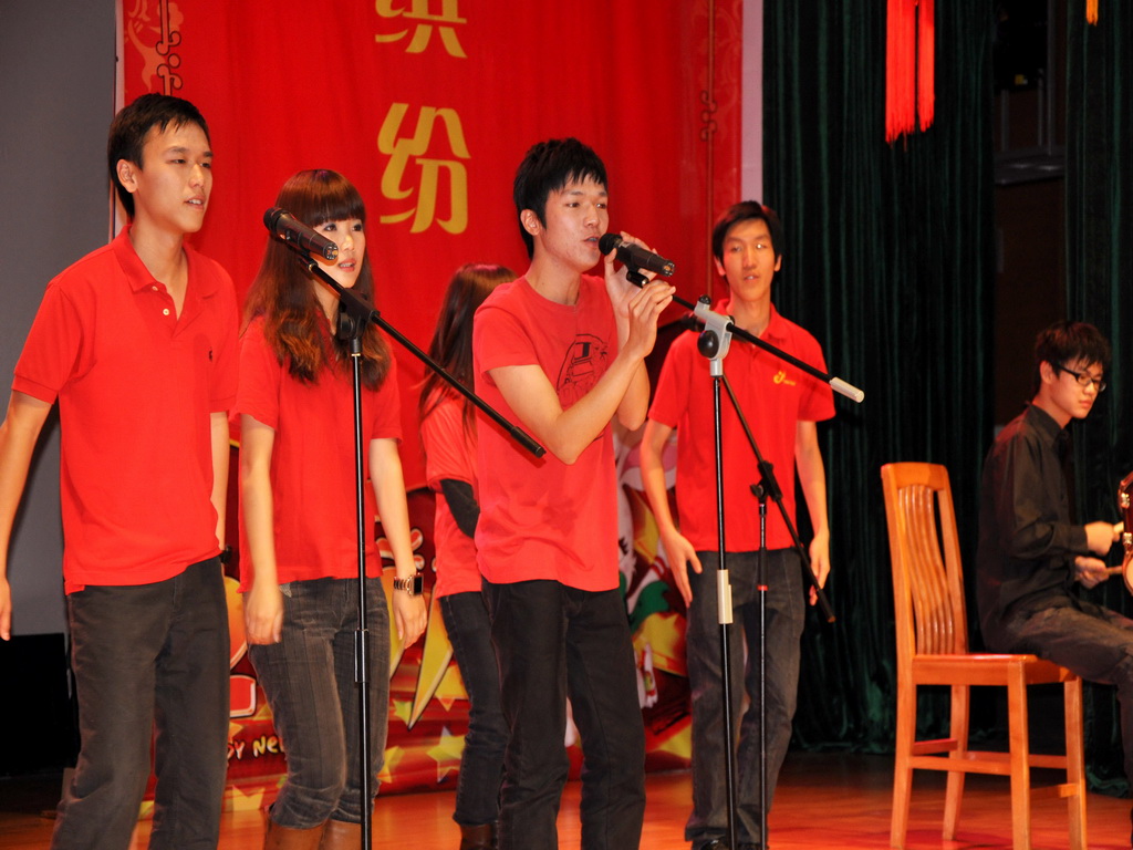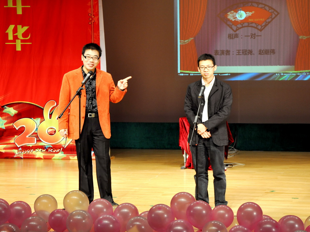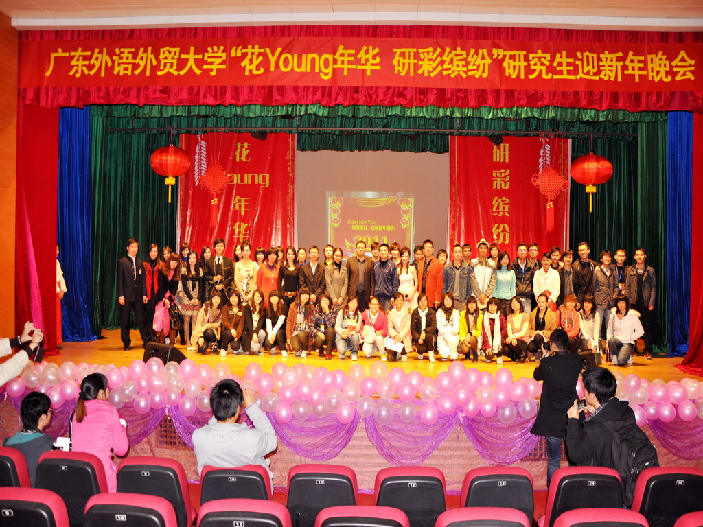 本网讯 12月28日晚,由研究生会、研究生团委承办的“花Young年华,研彩缤纷”2011研究生迎新年晚会在北校区六教报告厅举行。出席晚会的嘉宾有:副校长石佑启、研究生工作部部长康为茂、东语学院党委书记敖湘晖、商英学院党委副书记骆银花、西语学院党委副书记罗海洋,还有各学院研究生辅导员等。