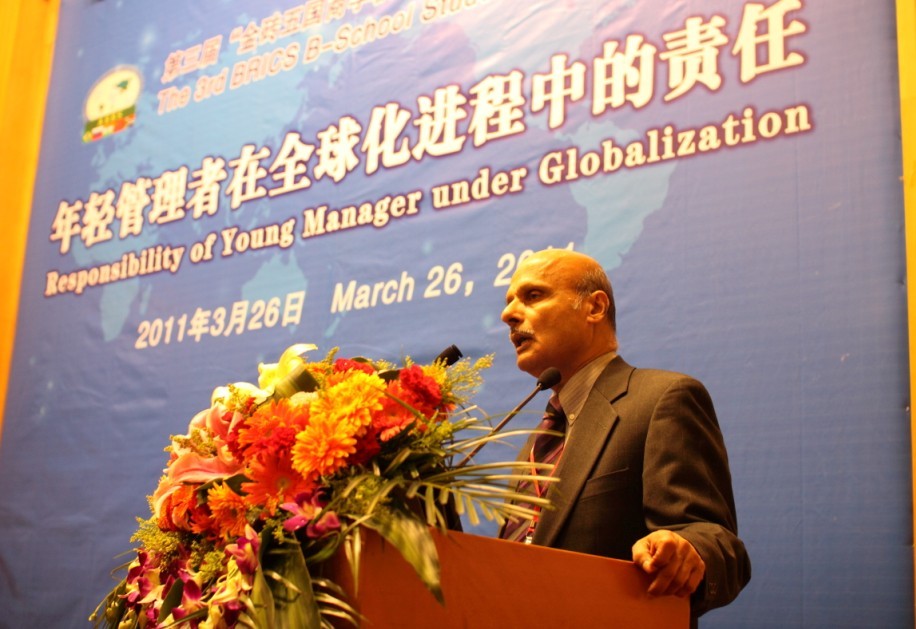 来自印度泽维尔管理与创业学院的Ravindranthan阐述了国际职业经理人教育要注重应对全球化的能力和社会责任感的培养。他指出,全球化将巴西、俄罗斯、印度、中国和南非五个国家紧密地联系在一起,而且这五个国家的经济都在快速增长;经济增长对我们来说非常重要,因为它可以改善生活,创造就业,并带来收入。全球化经济将使五国在商品出口和外资投入方面受益。因此,我们要培养具有全球化视野的经理人,培养他们竞争意识,灵活的工作能力以及社会责任感。