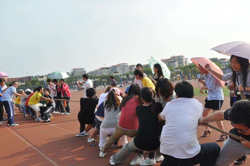 为保证比赛的公平进行,比赛采取抽签的方式进行,并采用淘汰制。赛前同学们就摩拳擦掌,跃跃欲试。在比赛开始后,各参赛队伍众志成城,齐心协力,紧抓绳子,不甘示弱。啦啦队员们也不断在旁边给各自队伍呐喊助威,加油鼓劲。比赛在笑声、呐喊声和紧张中进行。最后,经过2个多小时的激烈角逐,此次比赛的冠、亚、季军纷纷出炉,欧研&商英队凭借各队员的不懈努力,最终赢取了此次比赛的冠军。