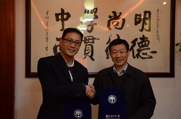 签订仪式上,许国彬说到,我校大力倡导学生“幸福生活、快乐学习”的理念,并表示,大学教育的发展,离不开社会各界善心人士的支持和援助,他由衷地感谢了邓永豪关注学校发展、热心教育事业和扶持广外学生的这一善举。