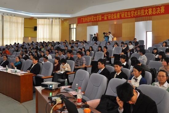 本网讯 3月24日下午,第七届研究生学术文化节开幕式暨首届“研论纵横”研究生学术科技大赛总决赛在南校区八角楼报告厅隆重举行。副校长石佑启、研究生处处长袁泉、研究生工作部部长康为茂、研究生处副处长朱文忠及各研究生培养单位分管研究生教育、德育工作的负责人、研究生辅导员、导师代表,中山大学、华南理工大学、暨南大学等11所省内高校的嘉宾出席了开幕式。开幕式同时在北校区六教A209设视频会场。
