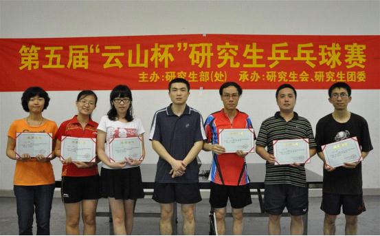 (备注:男子单打的前四名将与广外校乒乓球队队员、博士生林凡一起代表研究生部参加今年五月份举行的“广外杯”乒乓球男团的比赛;而女团代表队则由本届“云山杯”女单前三名与上届冠军卢秋影、博士生刘姬组成。)