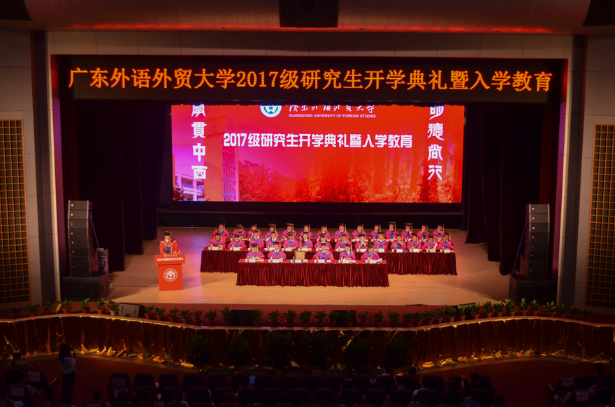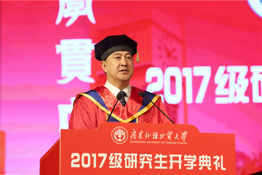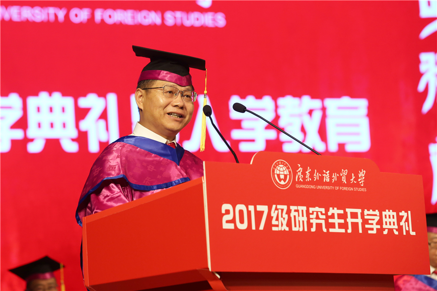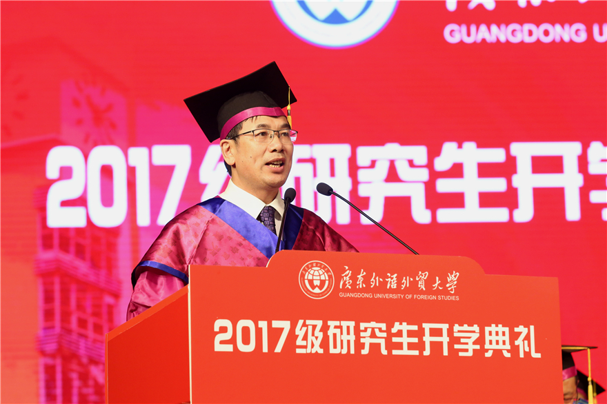 ,2017级研究生开学典礼在云山会堂举行,62名博士生和1175名硕士生正式开启了广外求学之旅。校党委书记、校长隋广军作题为“为学为人,求真求实”的致辞,寄语2017级研究生要坚守广外人所倡导的价值观:“卓越、诚信、包容和自信”,做到“诚信为学、踏实做事”。校党委副书记李云明,副校长何传添、陈林汉、阳爱民、焦方太,相关职能部门负责人、学院领导和研究生导师代表等出席。开学典礼由何传添主持。