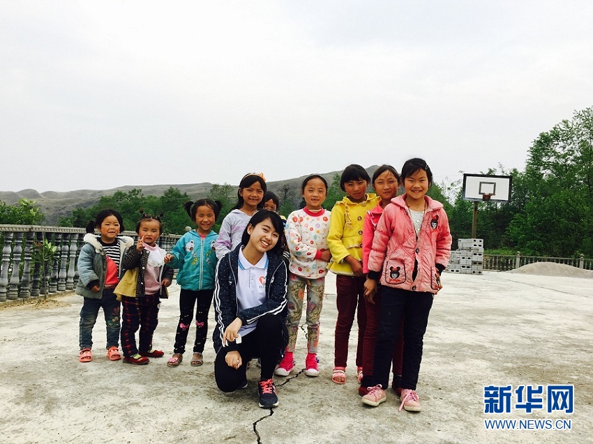 刘诗薇(中)与孩子们在一起。新华网发(受访者供图)