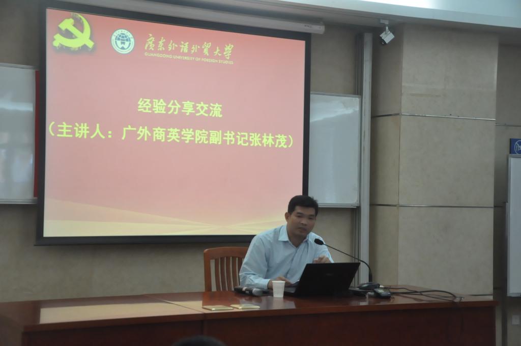我校商英学院党委副书记张林茂就商英学院发挥导师作用,培养学生干部,评选国家奖学金等方面与各位同事分享了经验。