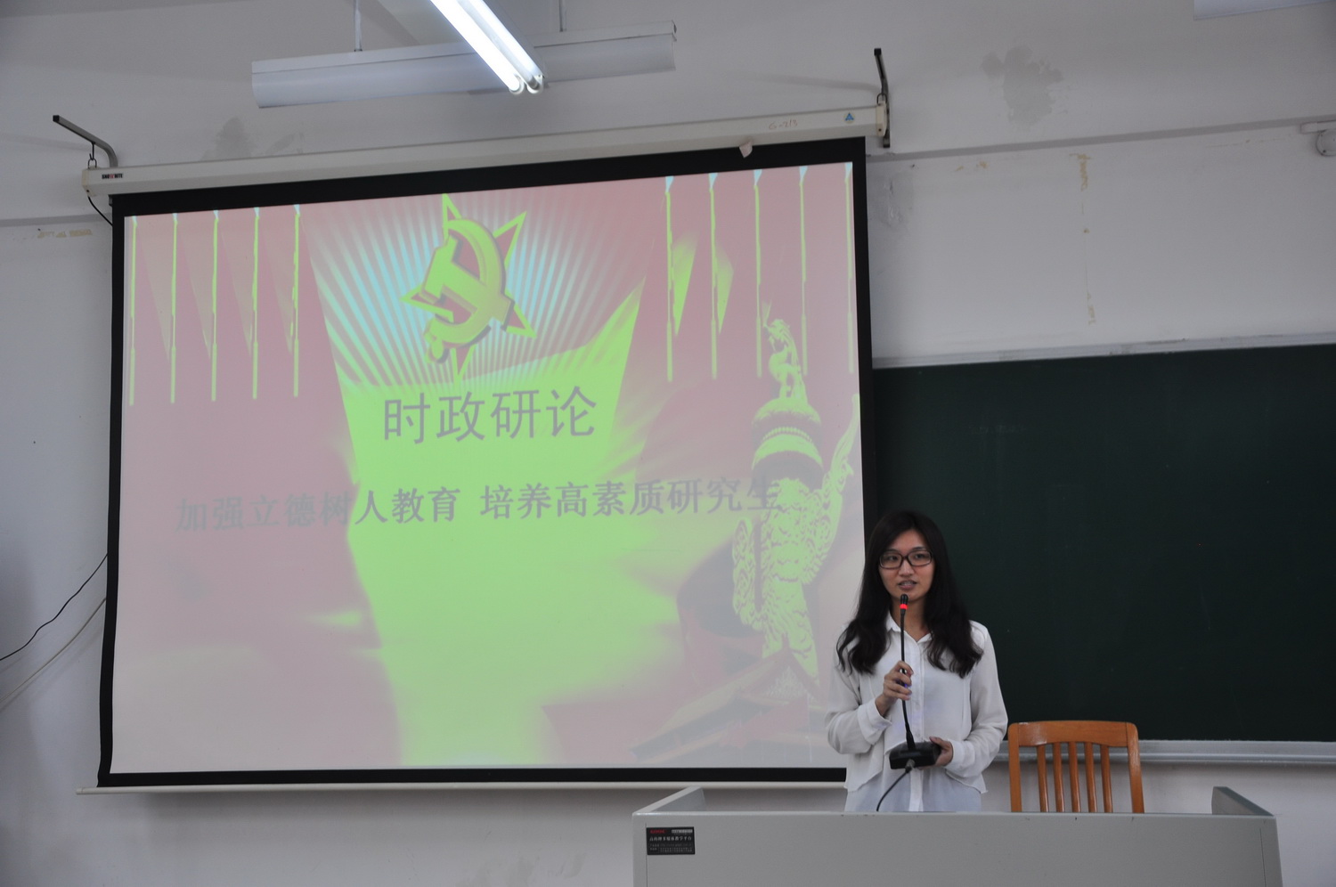 紧接着,第二届“时政研论”活动开始。本次活动主题为“加强立德树人教育,培养高素质研究生”。全体成员在主持人的带领下,分别观看了三个有关的教育视频,并就“立德树人”分小组交流讨论。随后各小组推选一名成员进行发言,旨在针对当下的教育之风作出正确判断,为成就高素质研究生出谋划策。