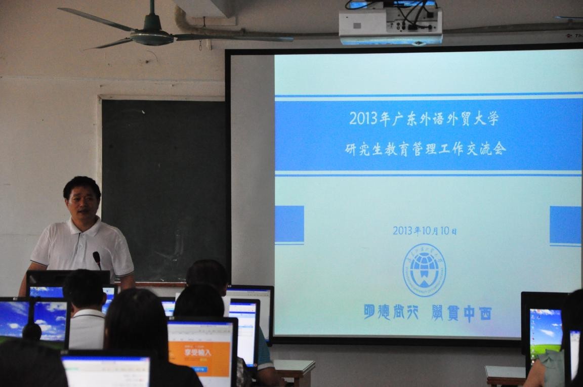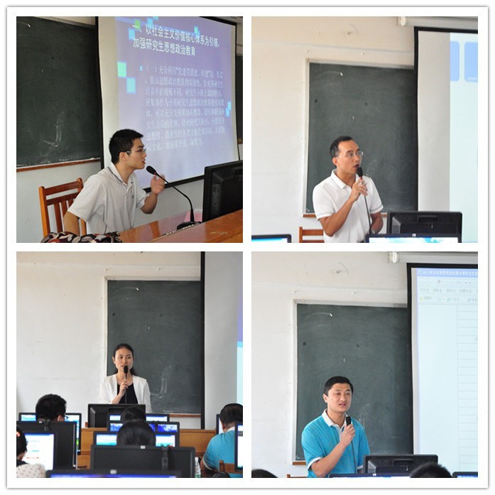 会上,研究生部(处)招生办、培养科、学位办、学工办科长分别就研究生招生、学籍、培养、学位、学工等工作与与会人员进行了培训与交流。在研究生招生方面重点介绍了2014年研究生招生政策的新变化,在研究生培养方面主要介绍了提高研究生创新能力的“54321”工程,在学位方面则主要介绍即将推出的研究生学位论文学术不端行为检测系统,在研究生德育工作方面主要介绍了研究生德育管理系统的操作以及2014年全日制研究生奖助贷体系。