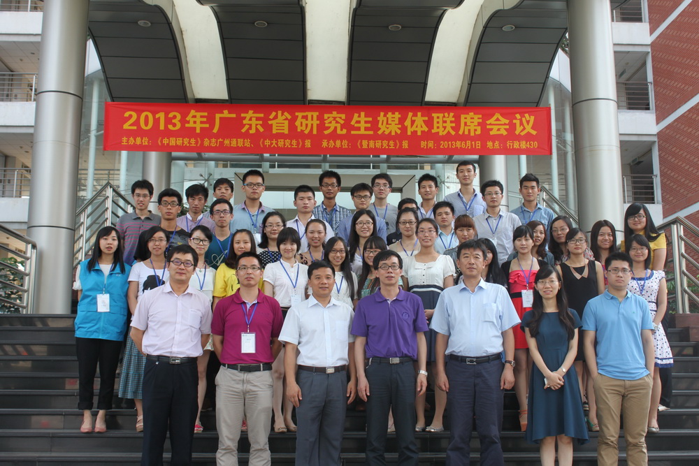 本网讯6月1日下午,由《中国研究生》广州通联站和《中国研究生》报主办、《暨南研究生》报承办的2013年广东省研究生媒体联席会在暨南大学行政楼430举行。会议主要内容为:探讨校园研究生媒体的现状和发展,扩大省内高校之间的媒体交流,增强与《中国研究生》杂志的交流,开展“优秀研究生校园媒体”系列奖项评选活动。