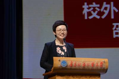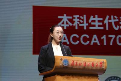 高年级师兄师姐也给新生们提供出了许多实用的建议。2017级本科生代表吕娜向新生们分享了自己的学习经验,对于学习和社团活动,她建议“学习为主,社团为辅”,对于专业知识与社会能力,她表示“学习知识是基础,而社会能力是人生路上的敲门砖”。她希望新生们在这四年中努力拼博,收获属于自己的广外故事。