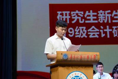 刚步入校园的新生已做好了自己的规划。2019级研究生新生代表张健强分享了自己对未来的畅想,他表示会计学子定以立信为先,牢记弘扬“明德尚行,学贯中西”的校训精神。作为师兄,他也向刚刚踏入大学校园的新生分享了几点建议,他希望新生们能够保持学习的热情,多交朋友,勇敢迈出自己的“舒适圈”,在大学阶段蓬勃起飞,翱翔天宇。