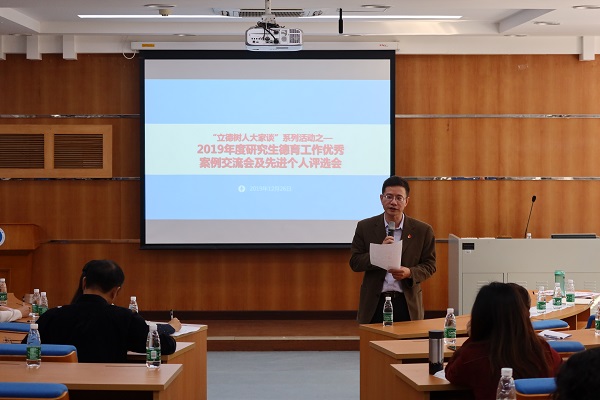 案例交流会后,评议组针对研究生德育工作先进个人进行了评议。据悉,本年度研究生德育工作先进个人候选人个人事迹将在微信公众号平台进行展示。