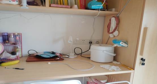 此次检查,学生宿舍区整体情况较好,大多宿舍能保持地面干净、物品摆放整齐、人走断电,但部分宿舍也存在使用高功率电器(空气炸锅、电饭锅)、私拉电线以及宿舍存在易燃物品等严重问题。