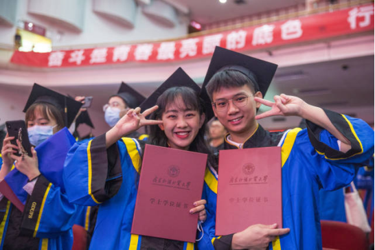 广东外语外贸大学举行2022届毕业典礼,毕业生合影留念