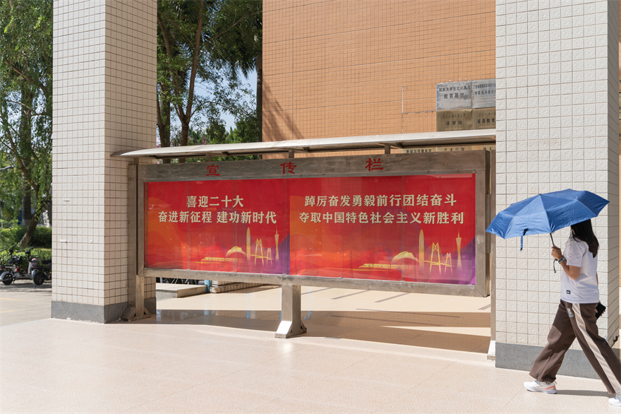 据悉,除开设四个直播现场外,我校还开通网络直播和录制点播功能,方便师生在课室或宿舍进行观看。为营造迎接二十大的良好校园氛围,学校在白云山校区、大学城校区、知识城校区校道上挂起横幅标语,在宣传栏张贴宣传画,体现广外师生期盼党的二十大胜利召开的热切心情。